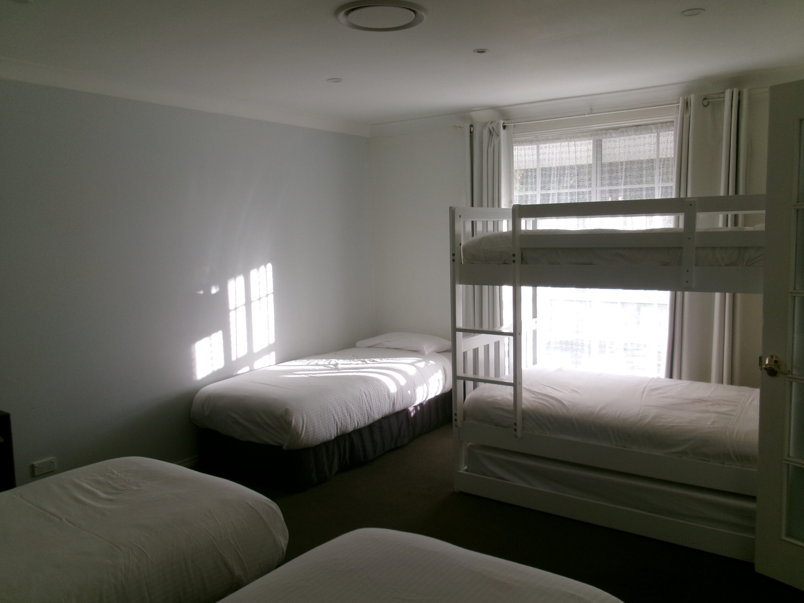 The Mansion has 11 large and very large rooms. Sleeping in comfortable King beds that can be split into king single beds, or other King Single beds in family rooms that allow parents and kids to be together.