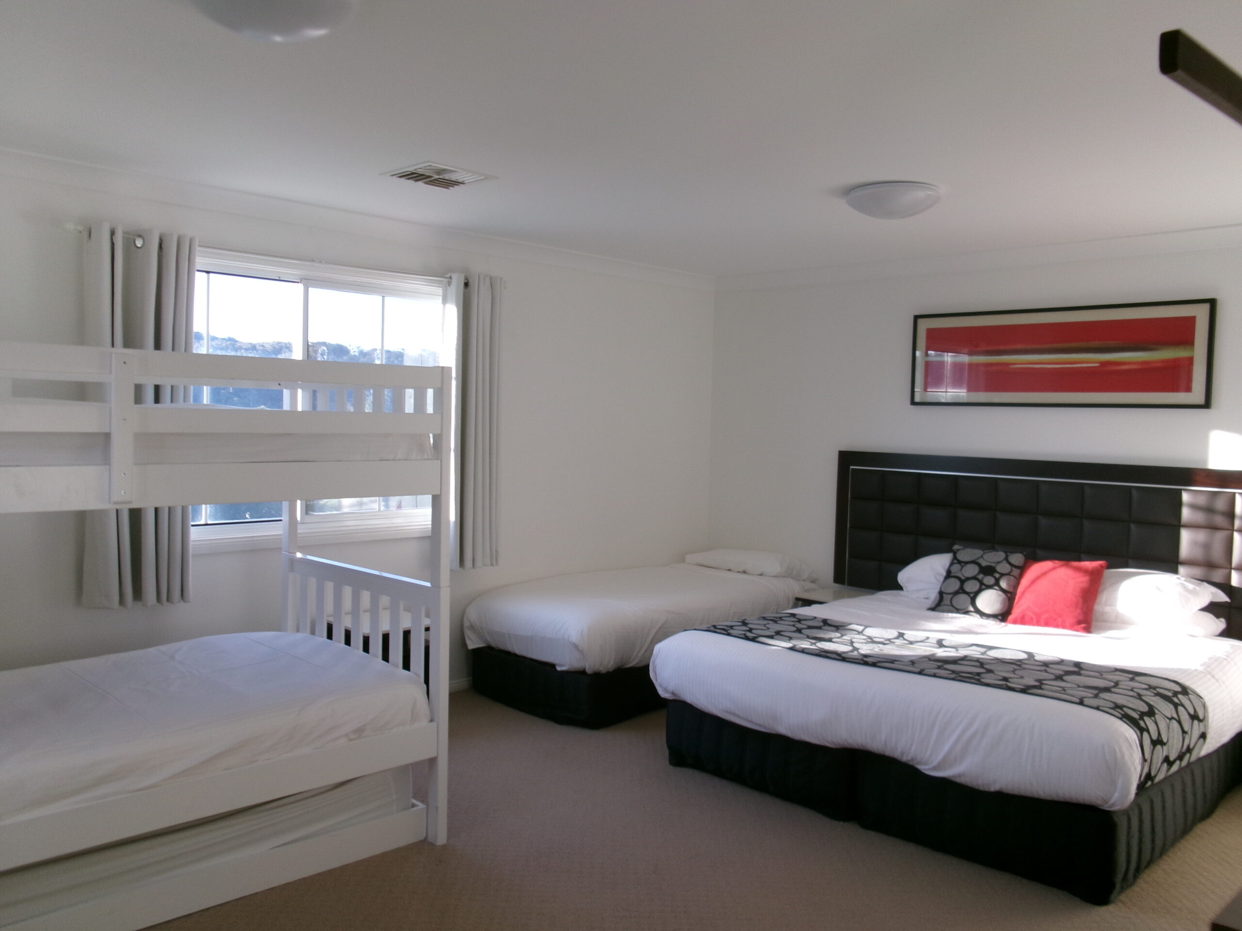 Upstairs in the Mansion we have 4 bedrooms. They include 3 massive family rooms with King Beds and king single beds and a fith bedroom upstairs with 4 king single beds is super popular for youth or adults.